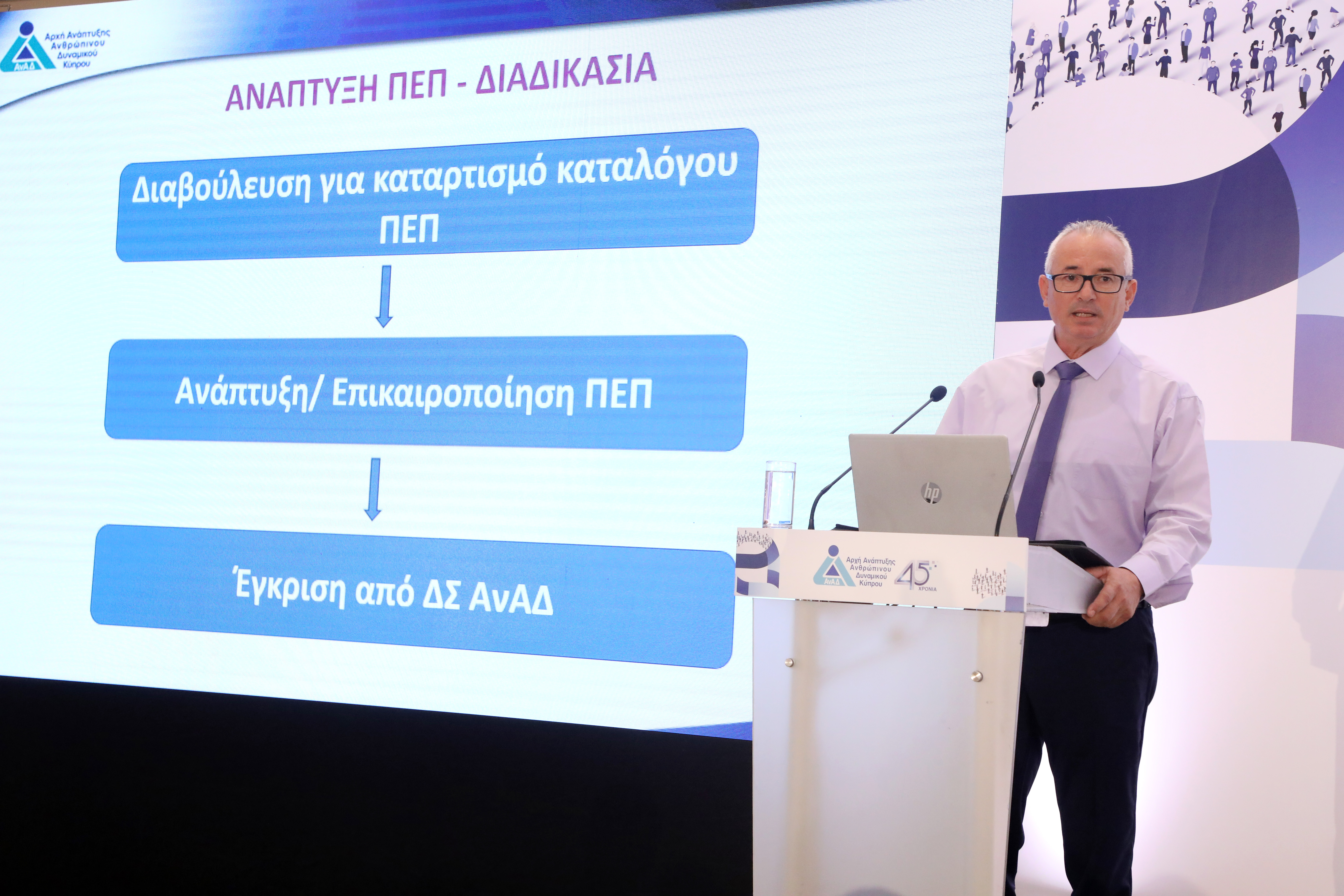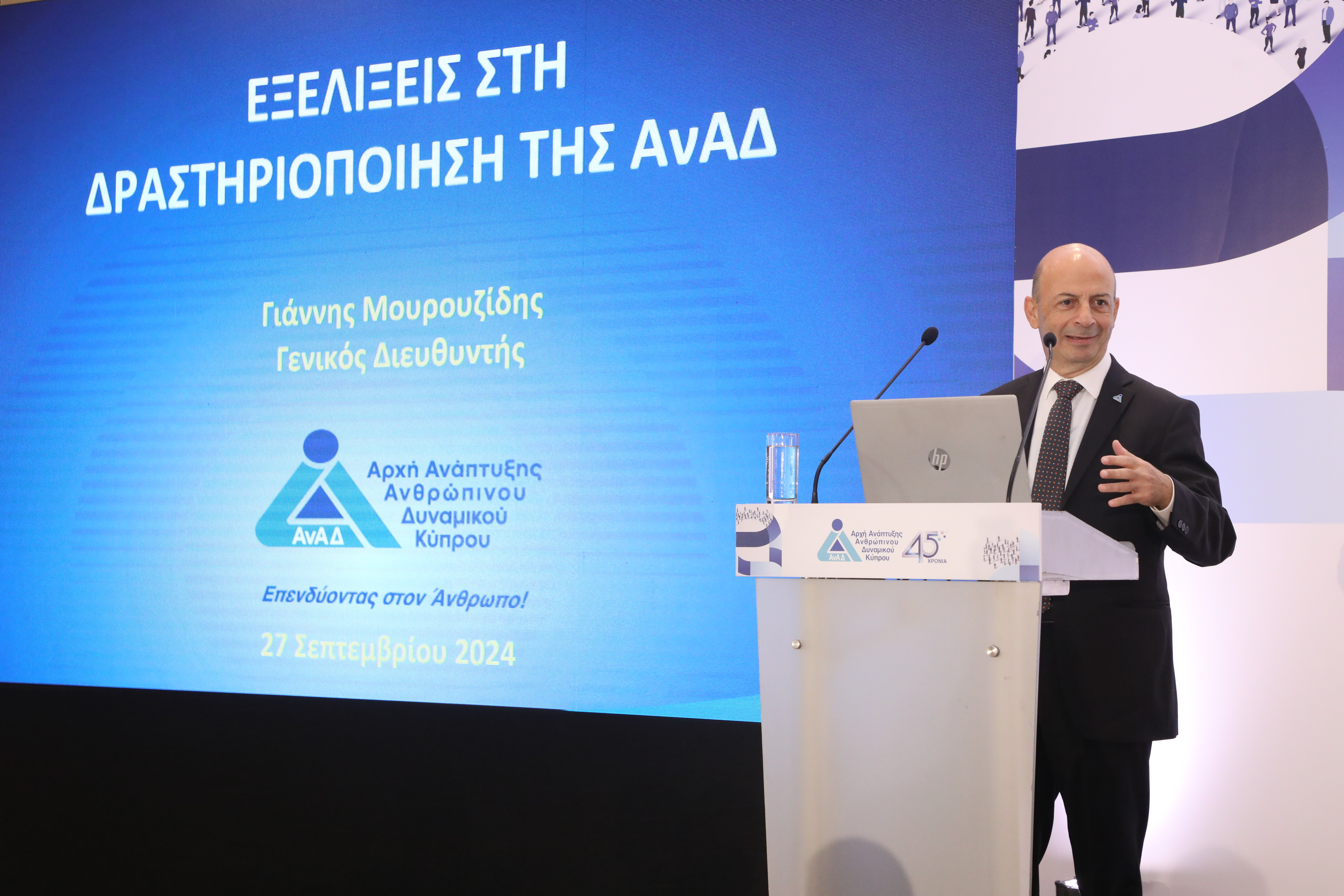 Ο Γενικός Διευθυντής της ΑνΑΔ, κύριος Γιάννης Μουρουζίδης, παρουσίασε τις εξελίξεις στις δραστηριότητες της ΑνΑΔ, με έμφαση στους βασικούς δείκτες της αγοράς εργασίας και τους στόχους για το 2030. Ο κύριος Μουρουζίδης αναφέρθηκε στην έλλειψη καταρτισμένου προσωπικού σε τομείς όπως ο Τουρισμός, τα Ξενοδοχεία και Εστιατόρια, η Υγεία, η Γεωργία, οι Κατασκευές, η Μεταποίηση και η Πληροφορική. Στόχος, όπως τόνισε, είναι η εξάλειψη της αναντιστοιχίας δεξιοτήτων μεταξύ εκπαίδευσης και αγοράς εργασίας και ο συνεχής εμπλουτισμός του ανθρώπινου δυναμικού της Κύπρου με τις κατάλληλες γνώσεις και δεξιότητες, ώστε να ανταποκρίνεται αποτελεσματικά στις διαρκώς μεταβαλλόμενες συνθήκες.